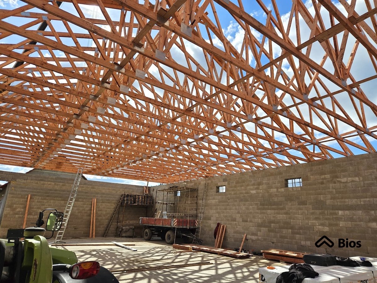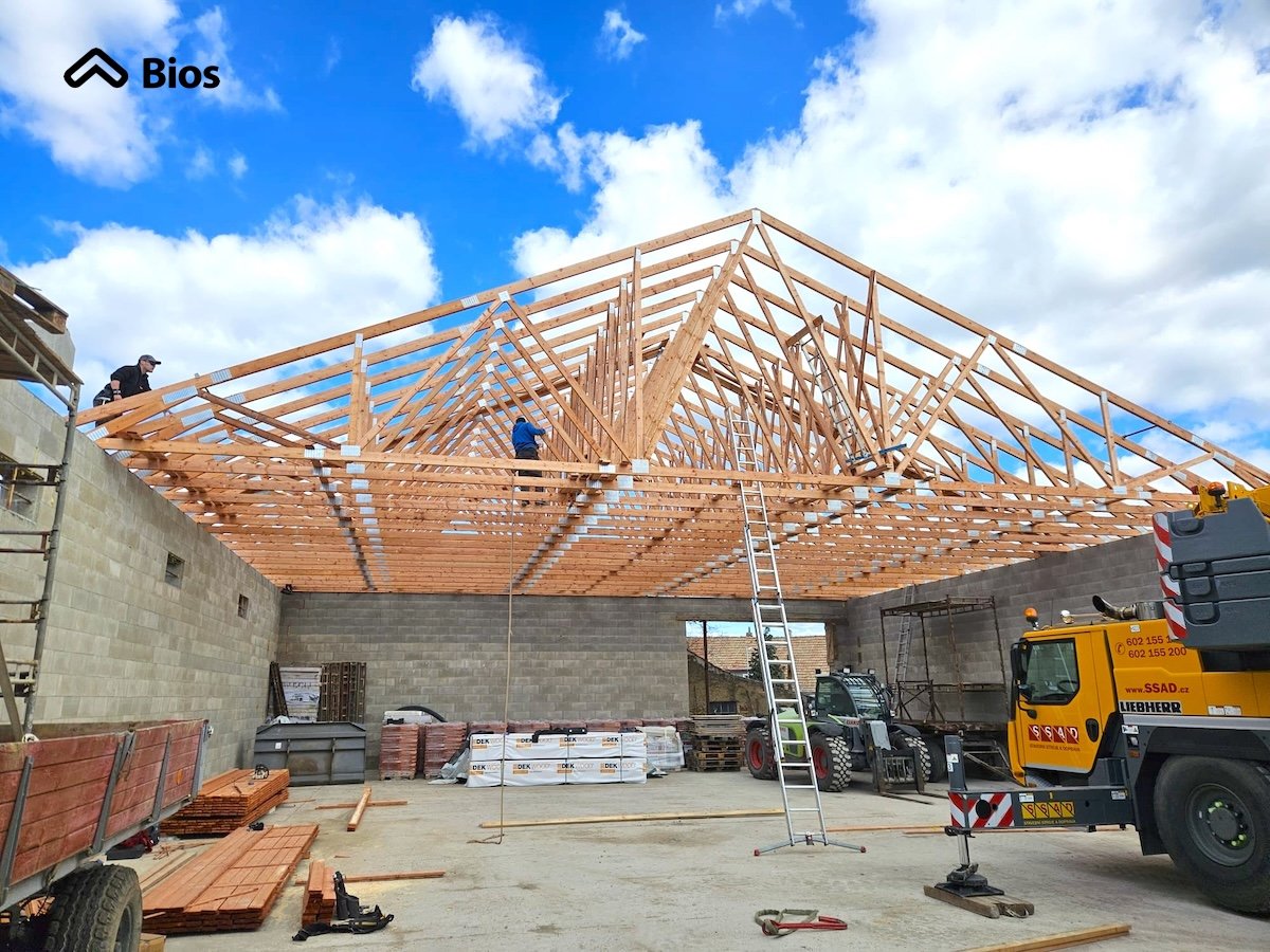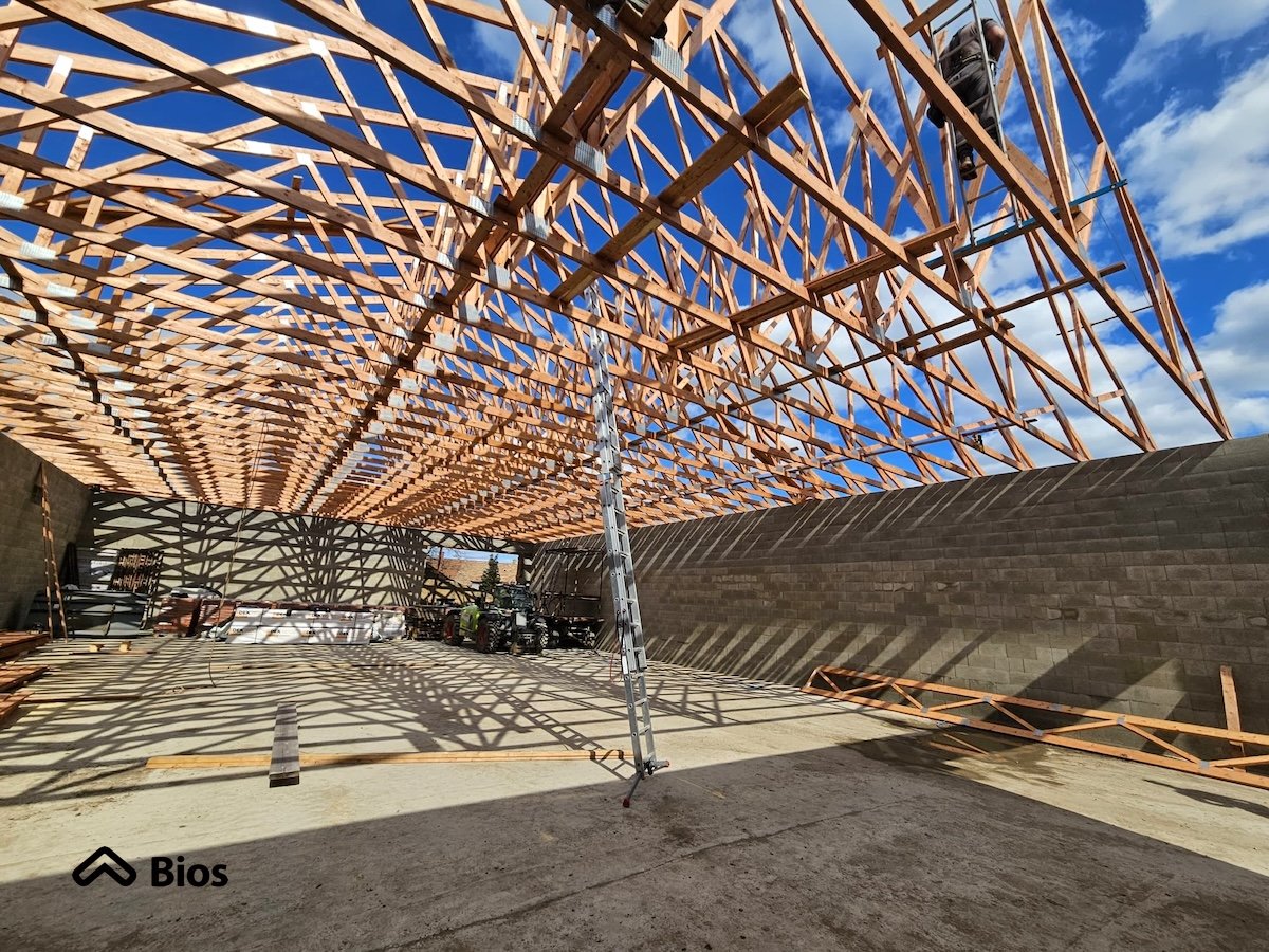 V BIOSu jsme zvyklí na výzvy – a jedna taková k nám dorazila z Rovného. Pro novou halu o rozměrech 18,7 × 30 metrů jsme navrhli a vyrobili dřevěné vazníky, které se rozhodně nevlezou do běžných tabulek. Délka 19,7 metru, výška 4,6 metru – a právě ta výška byla v projektu klíčová.