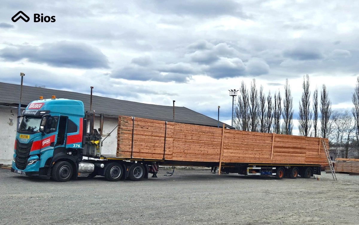 Jsme jedni z mála v širokém okolí, kdo dokáže takto vysoké dřevěné vazníky vyrobit v jednom kuse bez nutnosti dělení. Díky tomu jsme mohli zachovat maximální pevnost a stabilitu celé konstrukce. Výroba vazníků ale byla jen začátek – kvůli rozměrům bylo nutné zajistit noční nadrozměrnou přepravu, protože náklad zabral téměř celou šíři vozovky.